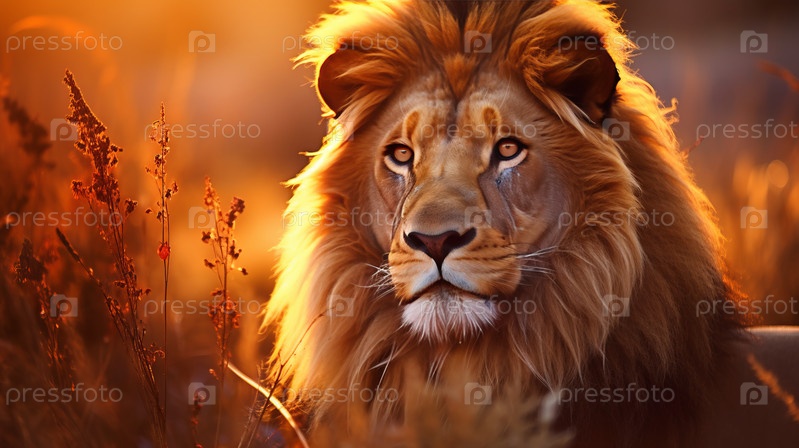 Быстро передать суть африканской саванны с акцентом на величественном льве как центральном элементе композиции