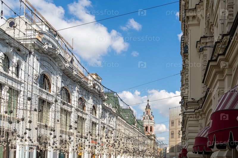 Никольскую улицу возле ГУМа украсили нарядными гирляндами