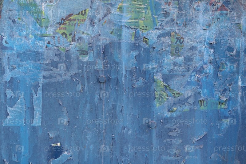 Синяя стена с рваной рекламой