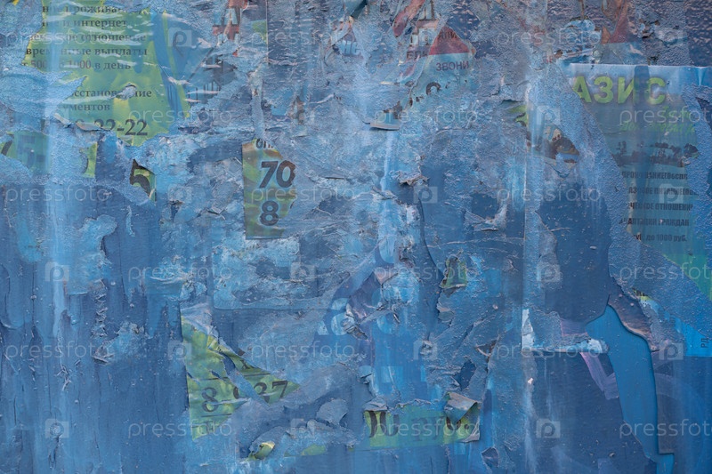 Синяя стена с рваной рекламой