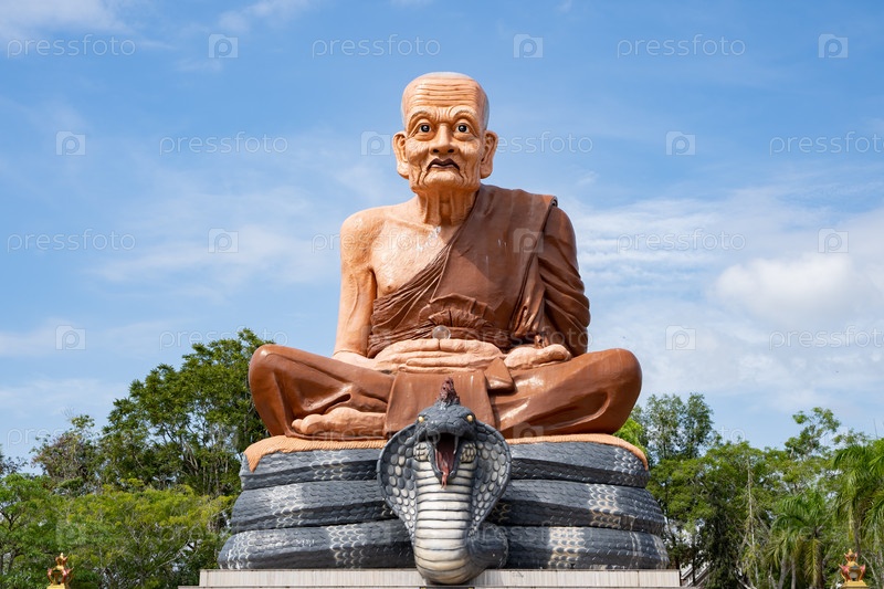 Монах с королевской коброй и кристаллическим шаром, храм Wat Bang Thong, Краби, Таиланд