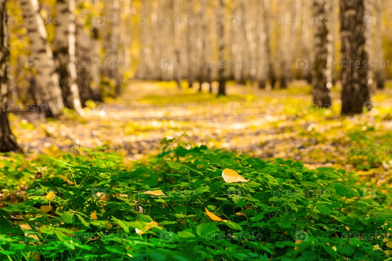 Осенний яркий пейзаж с березовым лесом