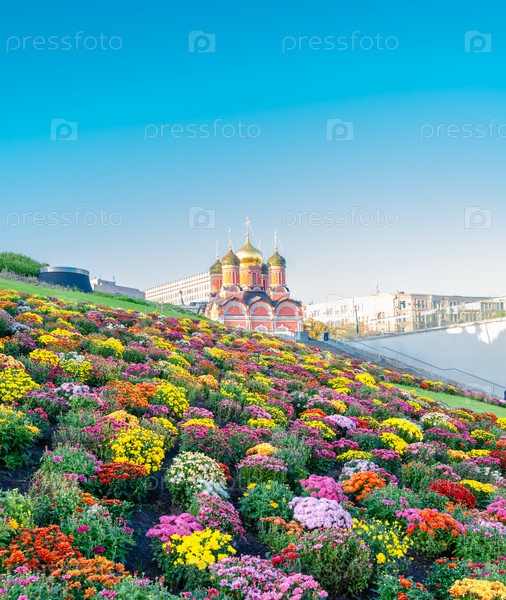 Большой цветник на склоне перед церковью