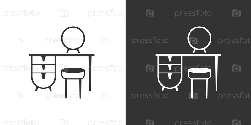 Туалетный столик с зеркалом и стул. Мебельная черная и белая иконка