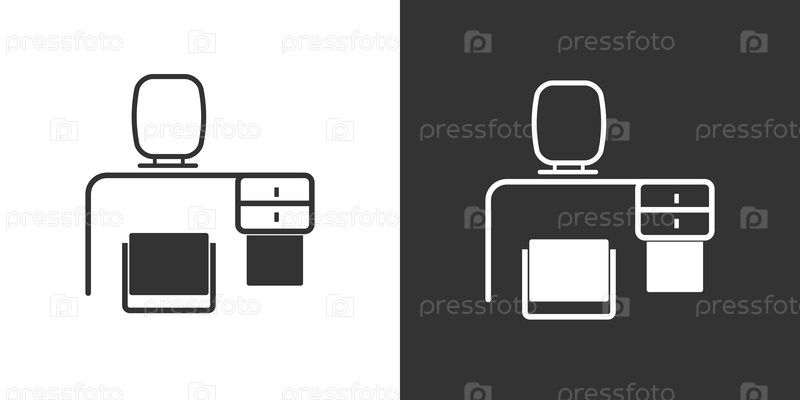 Туалетный столик с настольным зеркалом. Черная и белая плоская иконка