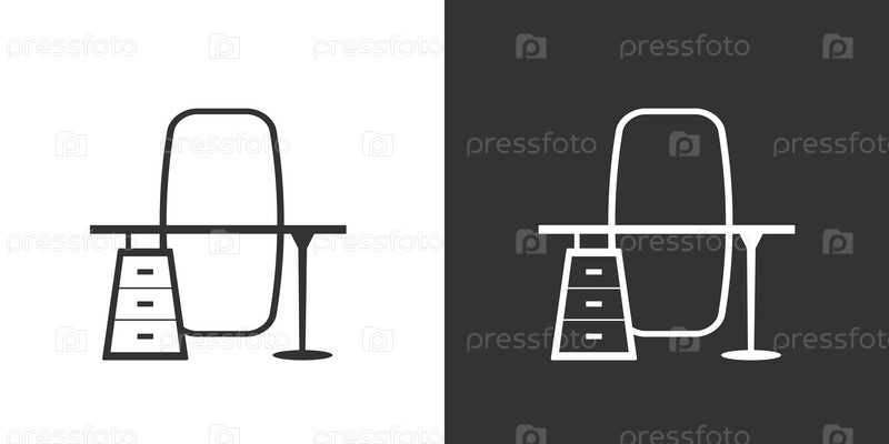 Туалетный столик с большим зеркалом. Черная и белая контурная иконка