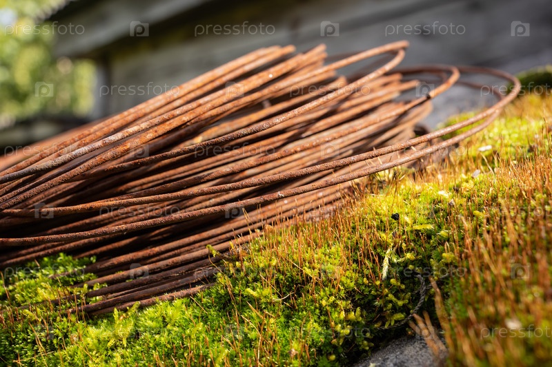 Металлическая ржавая проволока на замоховелой крыше
