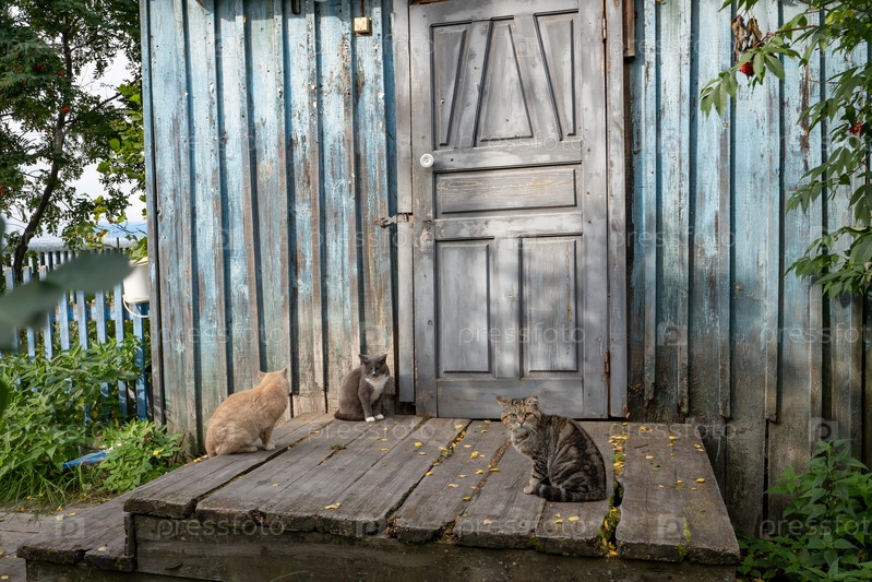 Кошки на крыльце дома