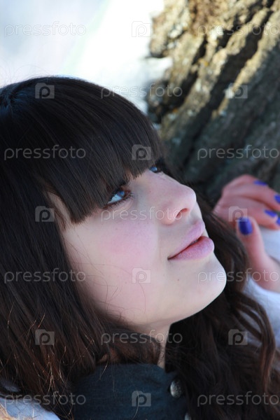 Красивая брюнетка возле дерева