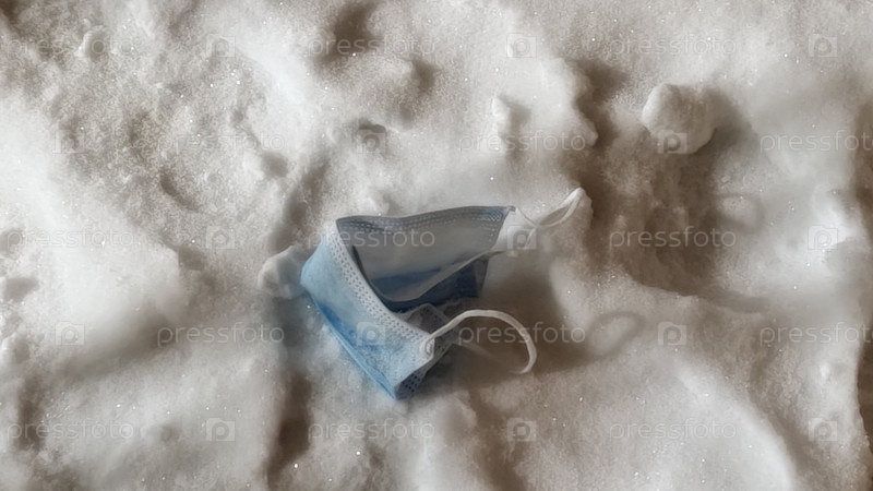 Маска лежит на рыхлом бетонном снегу