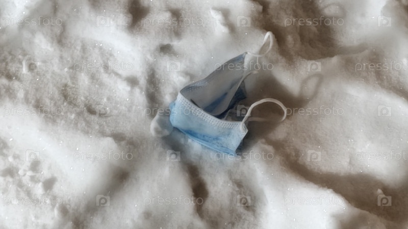 Маска лежит на рыхлом бетонном снегу