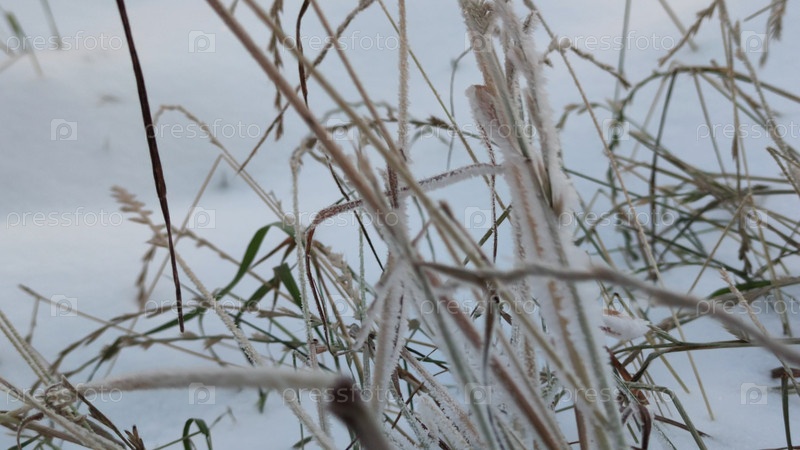 Замороженная сухая трава в снегу