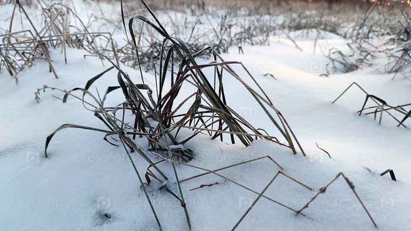 Замороженная сухая трава в снегу