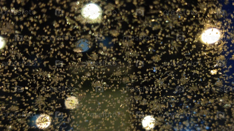 Белые снежинки на прозрачном стекле