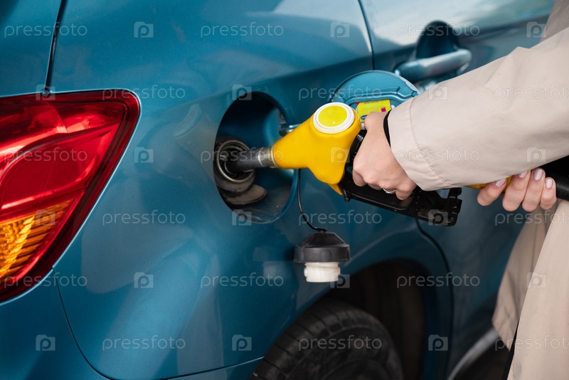 женщина заправляет автомобиль