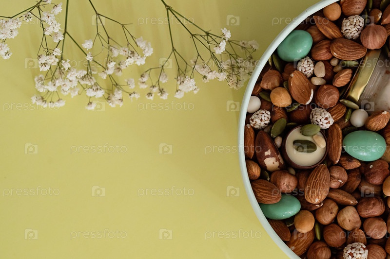 Арахис в коробке. Подарок к Женскому дню (8 марта), Женскому дню. День матери, День святого Валентина. Праздничная круглая коробочка