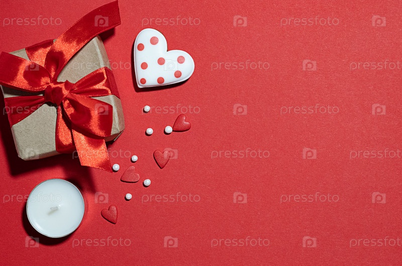 День святого Валентина. Международный женский день. День матери. Красные сердца и ремесленные подарки на белом деревянном фоне. Копирование пространства
