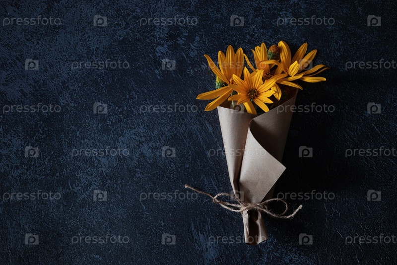 Букет желтых цветов на темном фоне в стиле гранж, абстрактная цветочная композиция, день матери, свадебный подарок, весенний или осенний фон с местом для текста, минималистичная концепция праздника, сдержанный натюрморт,