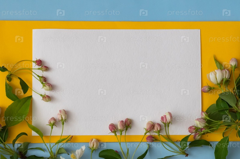 Открытка ко Дню матери, Дню святого Валентина, весне. Цветочная композиция. Рамка из сушеных цветов роз на белом фоне