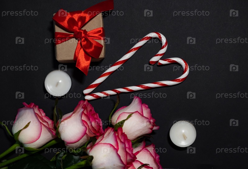 Вертикальный фон ко Дню Святого Валентина с макетом чистой бумажной карты, подарками, красными сердечками, конфетти на розовом