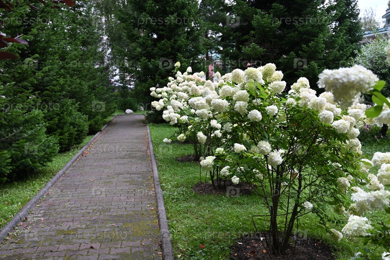 Белые гортензии, растущие на кусте