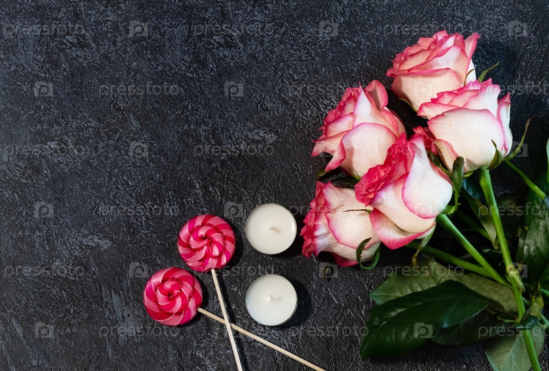 Вертикальный фон ко Дню Святого Валентина с макетом чистой бумажной карты, подарками, красными сердечками, конфетти на розовом