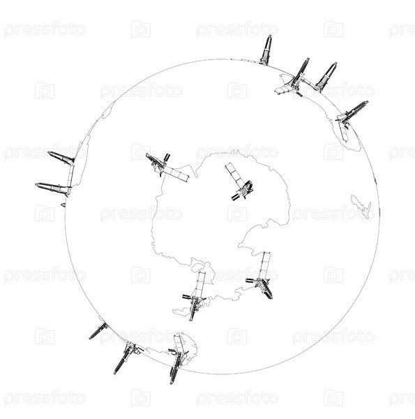 Нефтяные вышки на Земле.Векторное рендеринг 3d.Каркасный стиль