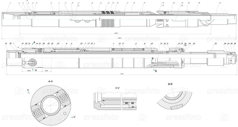 Инженерный чертеж промышленного оборудования. Векторный формат