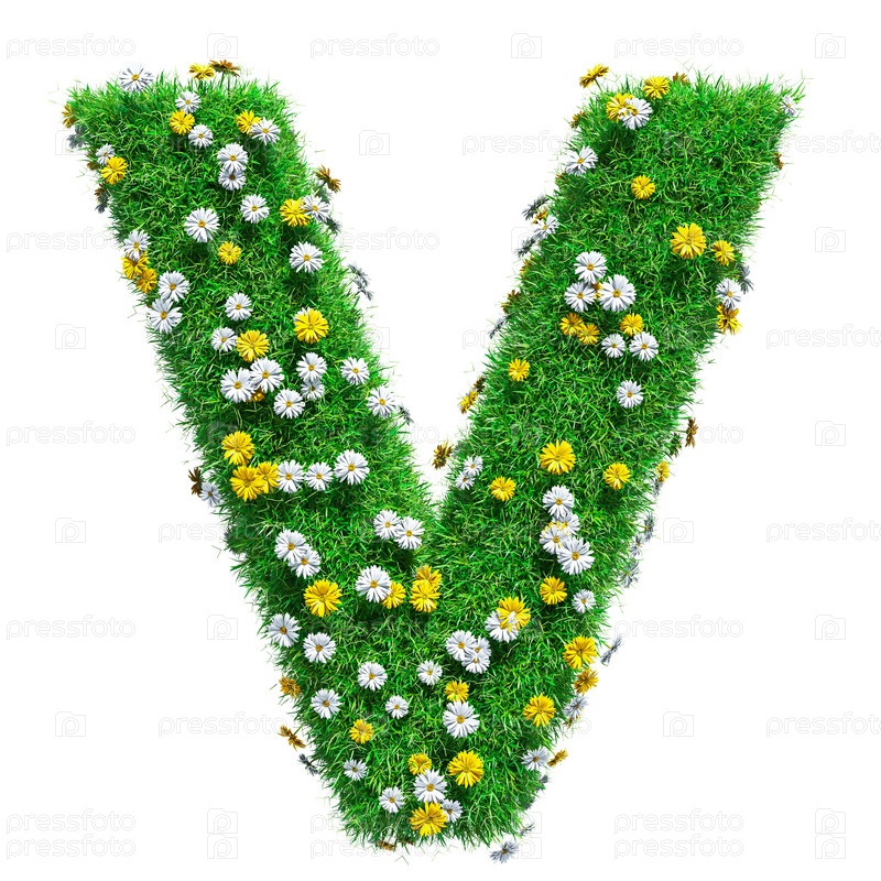 Буква V из зеленой травы и цветов