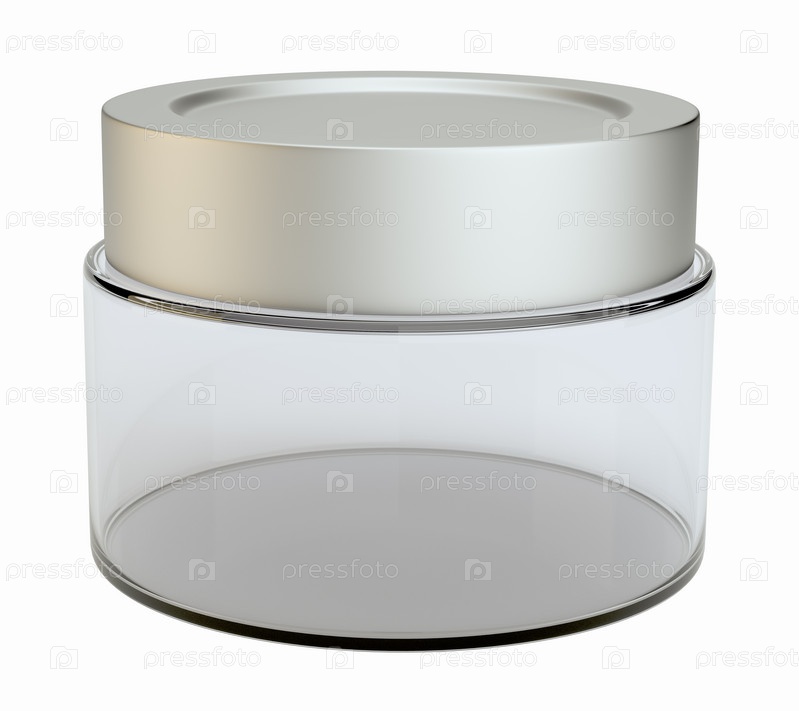 Пустая стеклянная банка для крема, изолированная на белом. 3D-иллюстрация