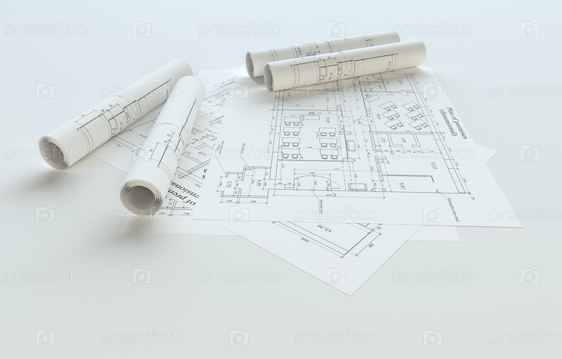 Чертежи свернутого дома на сером фоне