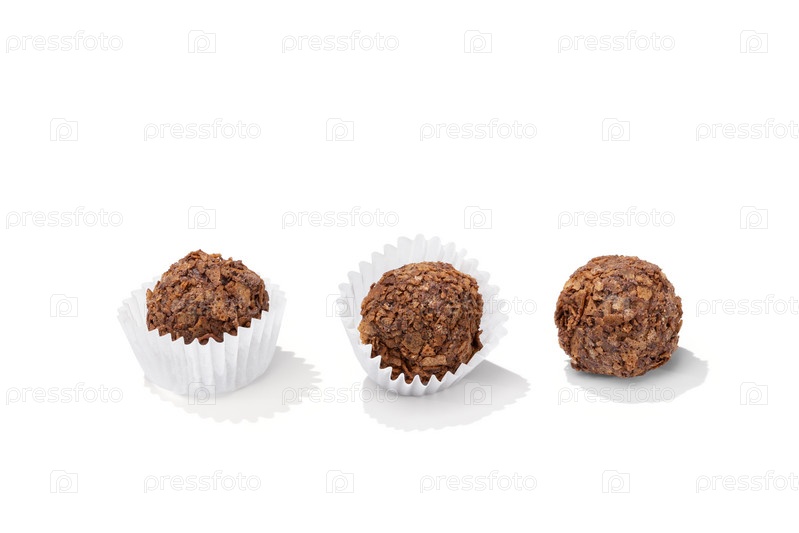 Шоколадная конфета трюфель с посыпкой крошкой изолированная на белом фоне