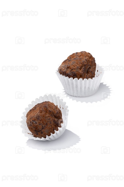 Шоколадная конфета трюфель на белом фоне