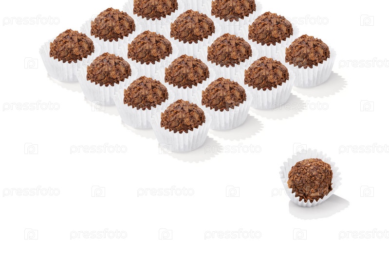 Шоколадная конфета трюфель с посыпкой крошкой паттерн на белом фоне