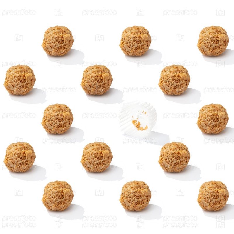 Шоколадная конфета трюфель с посыпкой крошкой паттерн на белом фоне