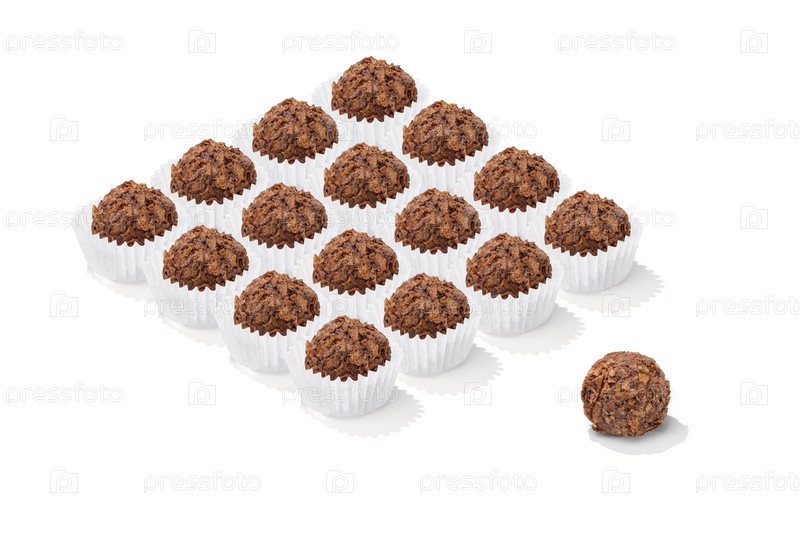 Шоколадная конфета трюфель с посыпкой крошкой паттерн на белом фоне