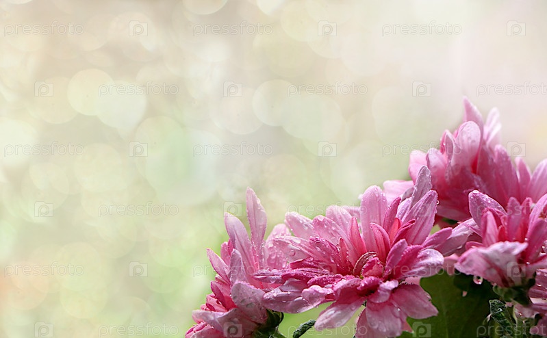 Абстрактный цветочный фон с размытым фоном с боке. Нежные цветы гвоздики с каплями росы после дождя в весеннем саду. Концепция прихода весны, цветочная открытка, шаблон для дизайна, выборочный фокус