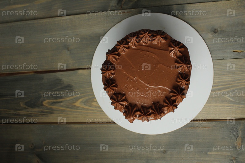 Трюфельный шоколадный торт на сером фоне с местом для копирования текста. Свежий эксклюзивный торт ручной работы. Праздничная атмосфера