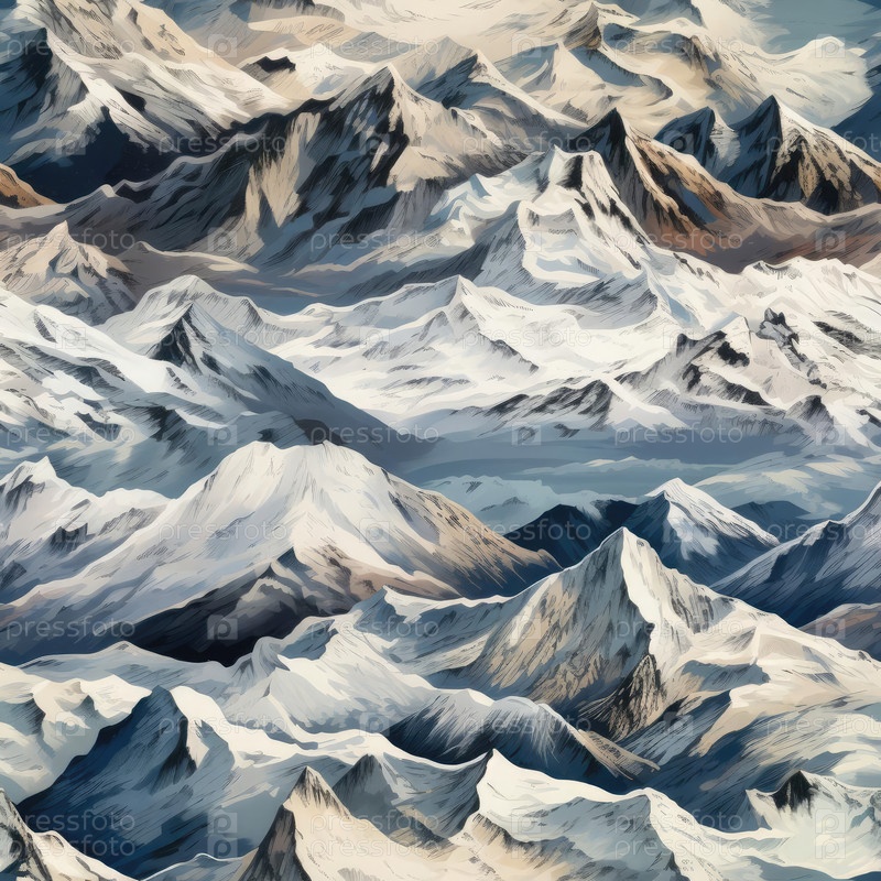Бесшовная иллюстрация, вид сверху на горные хребты