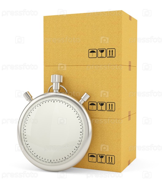 Картонные коробки с секундомером, изолированные на белом