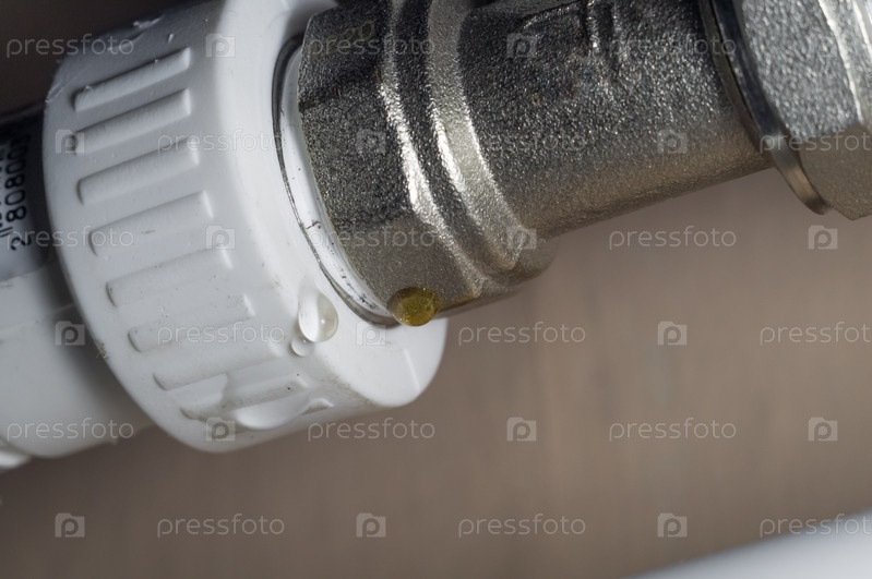 Утечка системы отопления. Проблема с протечкой воды в месте соединения труб и радиаторов системы отопления дома. Утечка воды при плохой герметичности резьбовых соединений труб. Селективный фокус
