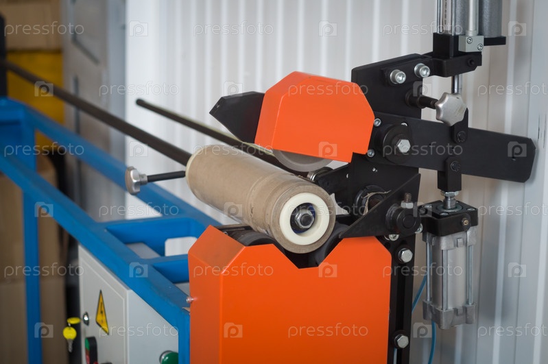 Современный станок для резки картонных гильз. Специальное оборудование бумажной промышленности для резки картонных гильз и трубок для типографии. Оборудование в типографии. Селективный фокус