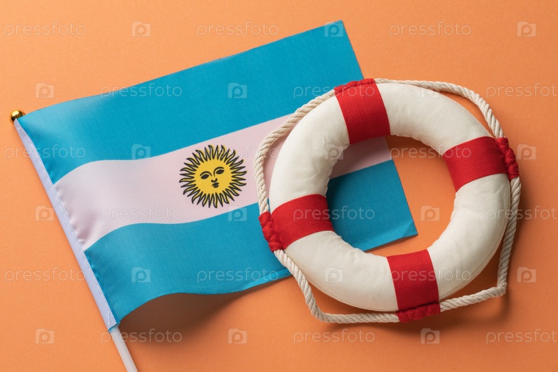Флаг Аргентины и спасательный круг на цветном фоне, концепция на тему помощи