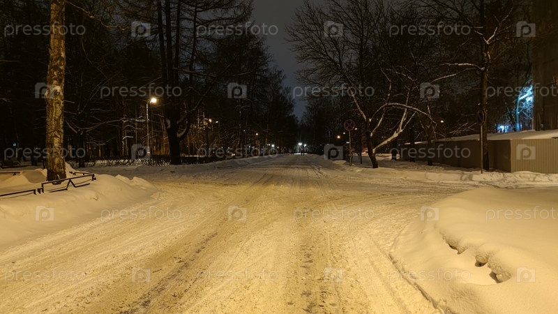 Вечерняя заснеженная улица