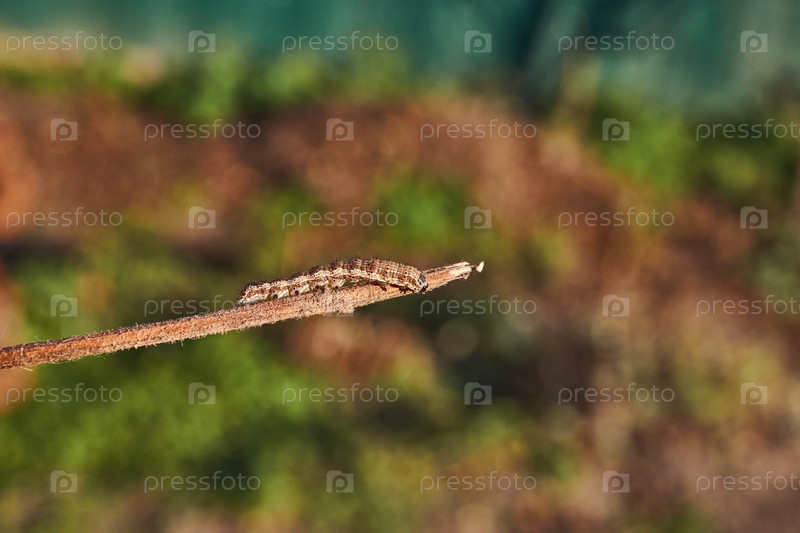 Гусеница Noctuidae ищет укрытие перед наступлением зимы