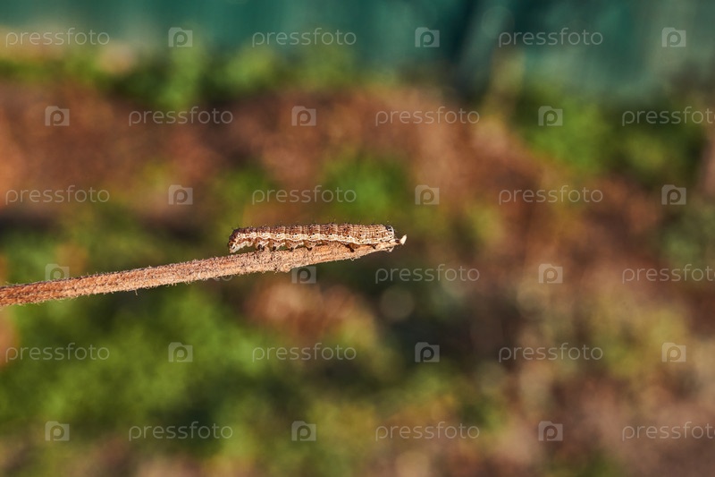 Гусеница Noctuidae ищет укрытие перед наступлением зимы