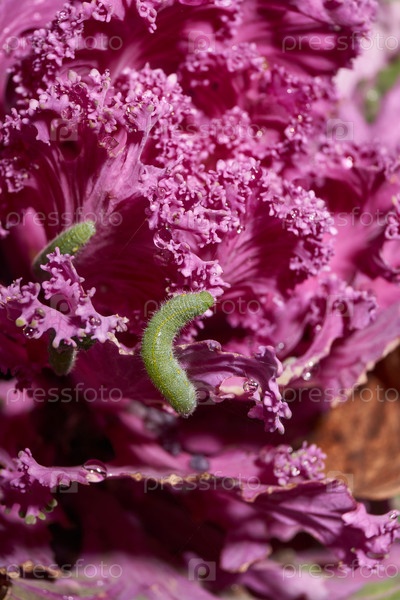 Гусеницы поедают декоративную капусту после дождя. ноябрь 2020 г