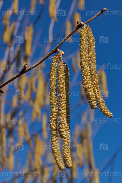 Тыквенные серёжки обыкновенной чечевицы (лат. Corylus avellana) цветут в начале весны до появления листьев