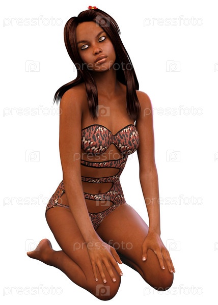3D темнокожая девушка в купальном костюме леопарда
