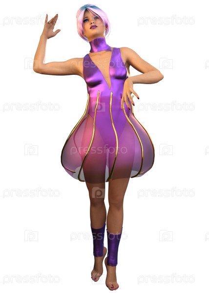 3D Девушка танцует в фиолетовом наряде